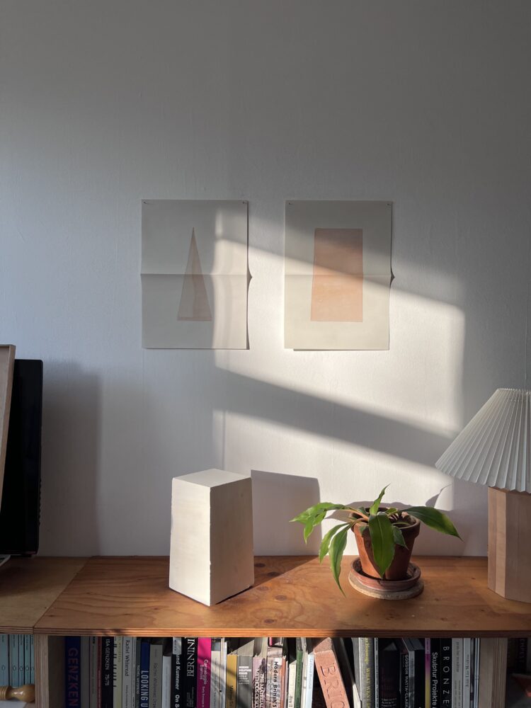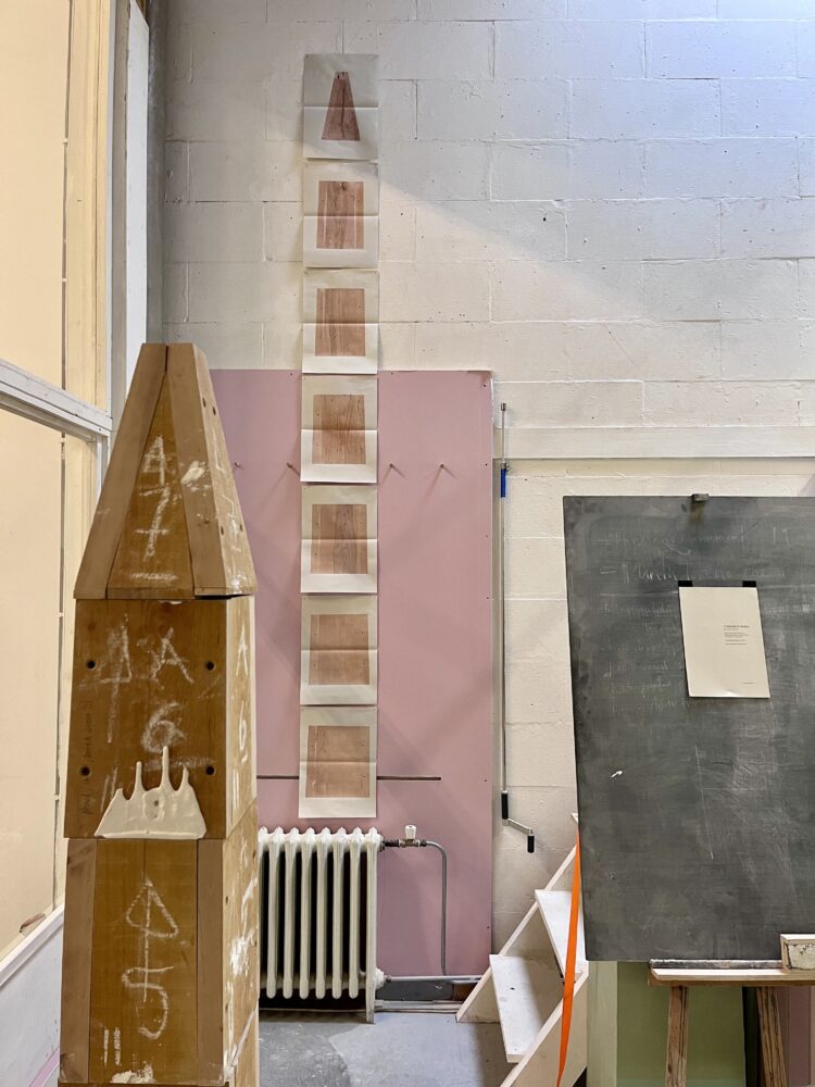 Unfinished obelisk is an incomplete sculptural translation of both monuments, scaled from their celestial 32 metres down to an anthropic 1.88 metres. From this, construction drawings were developed for a cast plaster obelisk and alder-wood mould whose seven parts hint at a mathematically ‘perfect’ obelisk – the diagonal across the base being perfectly equal to one seventh of the total structural height. These divisions also serve to fracture one funerary monument into multiple sculptures, commemorating one death in a divisible memorial whose constituent parts always retain a fundamental relationship to one another and to one whole. Unfinished obelisk consequently eschews stability and monumentality in favour of something more imperfect and far more human.