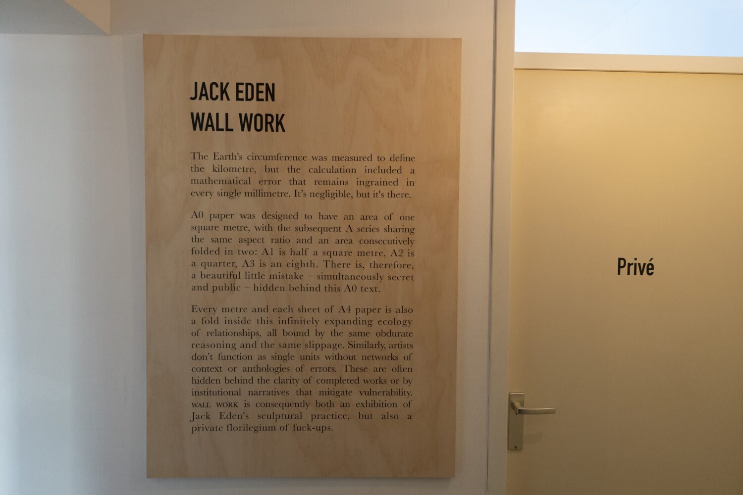This solo exhibition by Rotterdam-based sculptor Jack Eden invites you to view the freedom and experimentation that comes before the clarity and precision of a finished artwork. Wall Work is an intimate glimpse behind the scenes of this creative process, featuring unseen calculations, drawings, writings, maquettes, mistakes, wall-sculptures, printed ephemera and photography.